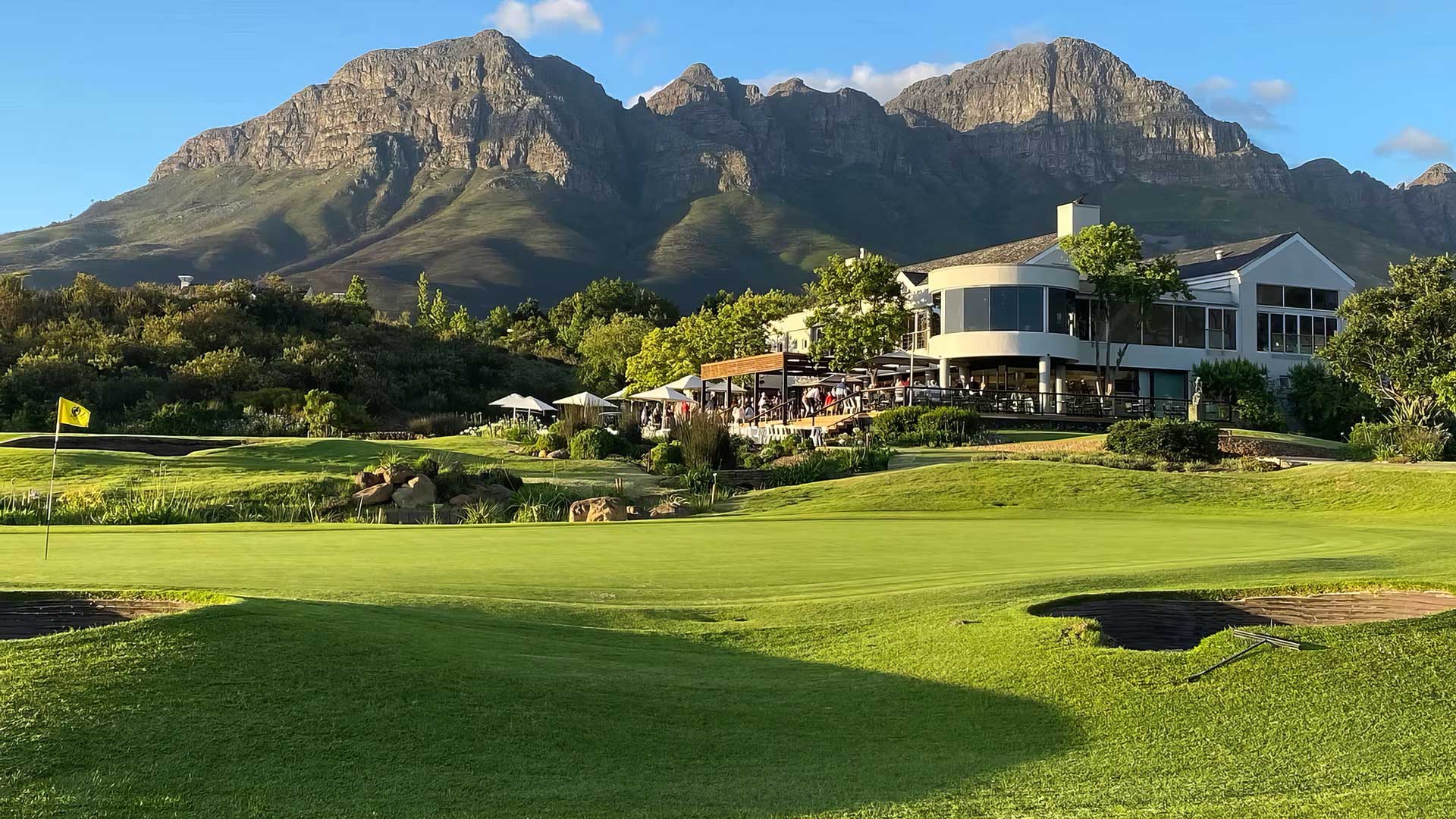 Við ökum af stað snemma morguns í um 1 klst. að hinum glæsilega Erinvale Golf Course, sem hannaður er af Gary Palyer og umlukinn mjög stórkostlegum fjallahring.