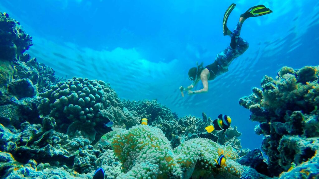 Eftir morgunverð setjum við á okkur sólgleraugun og nóg af sólarvörn því dagurinn fer í svokallað „Eyjahopp“.  Við siglum milli fallegra eyja og voga þar sem við njótum náttúrufegurðarinnar og góðs félagsskapar fram eftir degi.