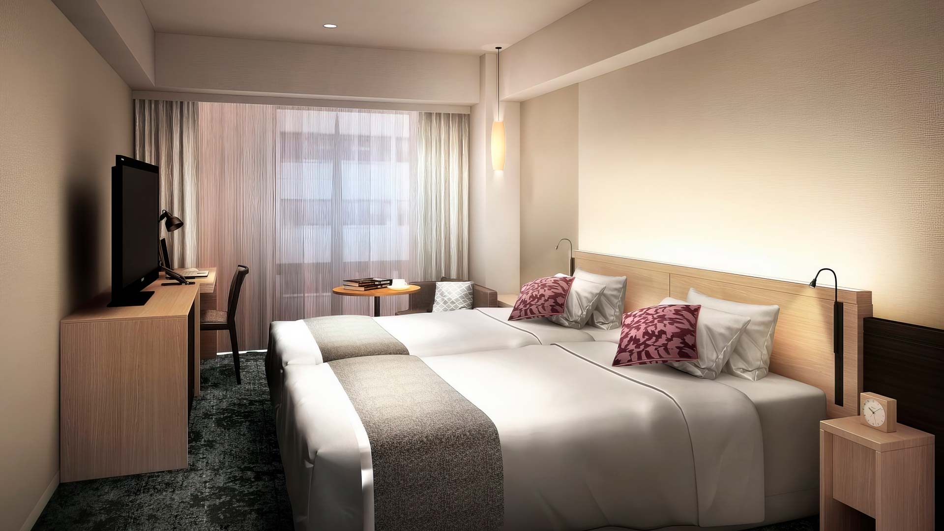 Hótelin okkar eru 3-4 stjörnu, vel staðsett og með vel búin herbergi 20-24fm að stærð, en það er algengasta stærð herbergja á japönskum hótelum fyrir viðskiptaferðalanga og almenna ferðamenn.