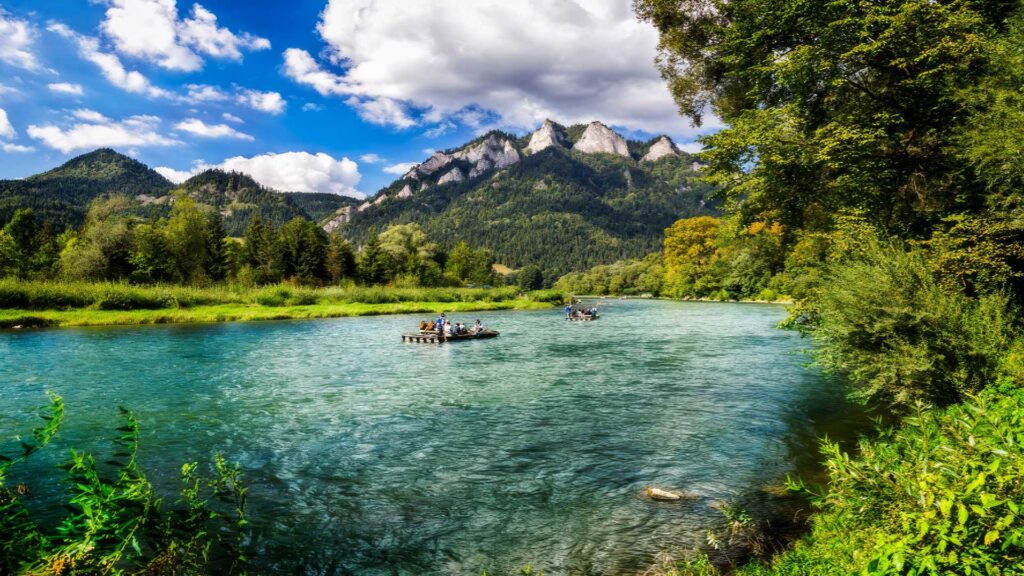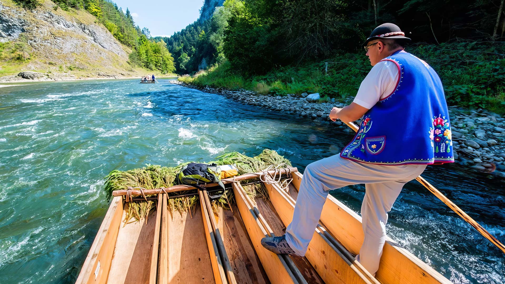 Eftir morgunverð og útritun af hóteli fer hópurinn í rólega og töfrandi flúðasiglingu á viðarbátum. Siglt er á Dunajec ánni milli hárra kletta og trjáa í öruggum höndum flisak-leiðsögumanna.
