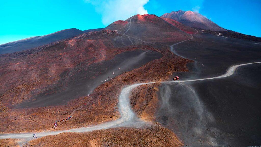 Í dag bíður okkar einstök upplifun þar sem náttúra, fegurð og smekkvísi renna saman í eina ógleymanlega heild. Við ökum með jeppum upp hlíðar Etna, virka eldfjallsins sem gnæfir yfir norðurhluta Sikileyjar, með reyndum fjallaleiðsögumanni sem leiðir okkur í gegnum fjölbreytt landslag og sögur fjallsins. Eftir því sem við hækkum í hæð breytist umhverfið frá grænum vínekrum og kastaníu trjám yfir í svartar hraunbreiður og gufustróka sem minna okkur á þann eldmóð sem býr undir yfirborðinu. Í um 3.000 metra hæð opnast fyrir okkur stórbrotin sýn yfir hafið og sönn tilfinning fyrir mætti náttúrunnar.