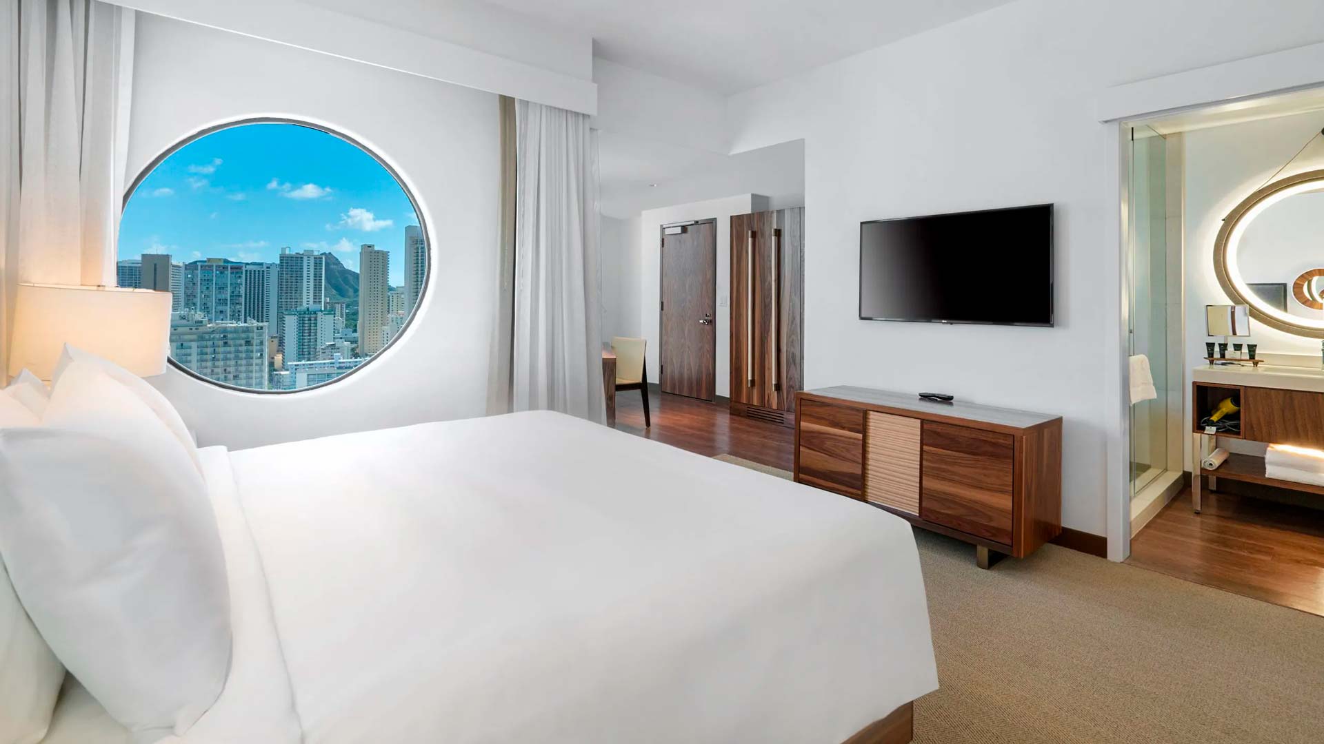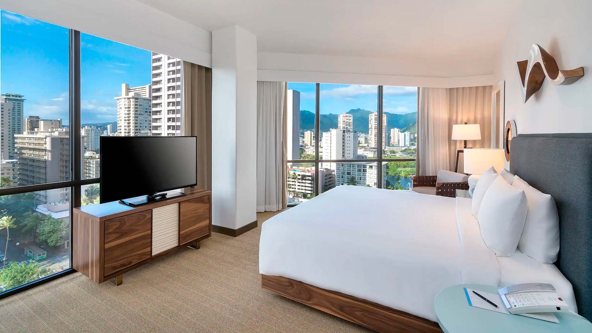 Enskumælandi staðarleiðsögumaður tekur á móti okkur og síðan er ekið beint á hótelið okkar Hyatt Centric sem er við Waikiki ströndina í höfuðborginni Honolulu. Allir eru þreyttir eftir flugið og tími til að hvílast vel.